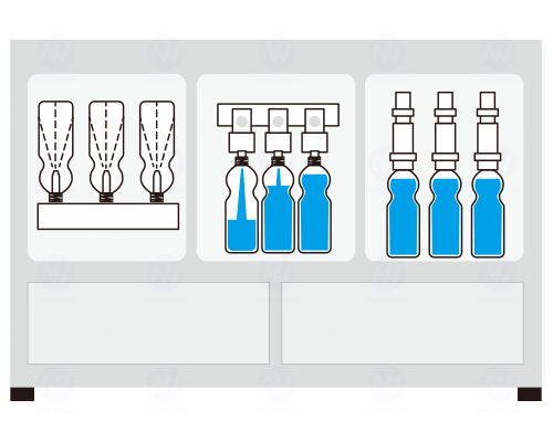 The conveyor, dryer, and injection system of the filling machine work seamlessly to ensure smooth bottle handling and optimal production efficiency. Bottles are precisely transported along the conveyor, thoroughly dried by the high-efficiency dryer to remove any residual moisture, and then accurately positioned for injection or filling.
