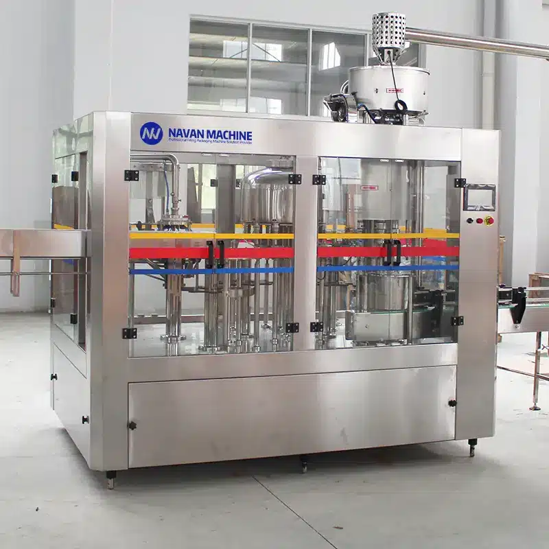 This water bottle filling machine combines washing, filling, and capping, significantly reducing the factory footprint and labor costs.